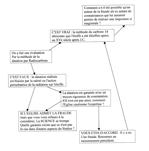 Nous schématisons de manière brève et simple la manière de réfuter les objections à la fraude du Sindon :